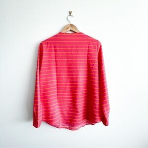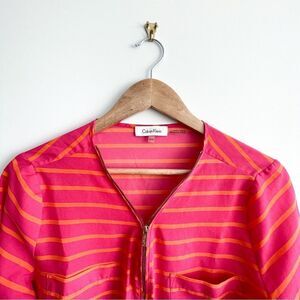 Calvin Klein Blouse Half Zip Pink Orange Stripe Cuffed Sleeves Button Women's M
