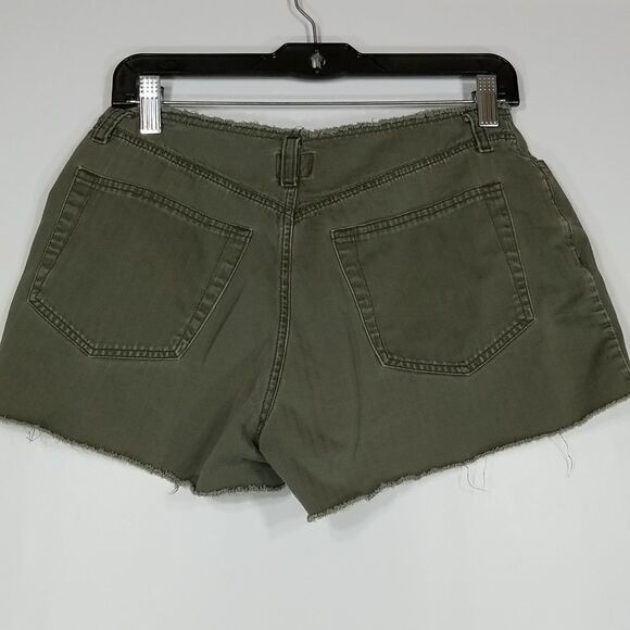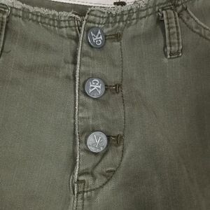 Calvin Klein Jean Size 8 please check measurements below for proper fit, Olive Green Distressed Shorts Raw Hemm Button Closure