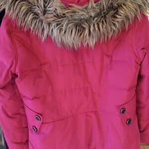 Beautiful Calvin klein winter puffer jacket size L. Good fit. Can be used by a medium person without being too big. .Color Burgundy. It was only used a couple of times. In great used condition.
