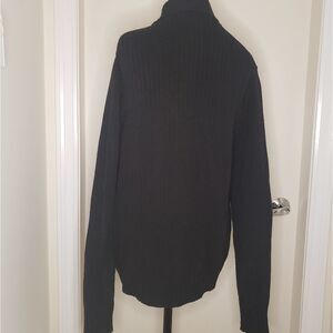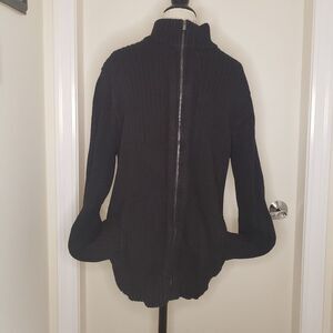 Long Sleeve Black Ribbed Knit zip-up Cardigan Sweater Jacket with side Pockets, by Calvin Klein Jeans.