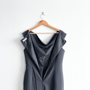 Calvin Klein Women's Sleeveless Cowl Neck Ruffled Knee-Length Dress Gray Size 8
