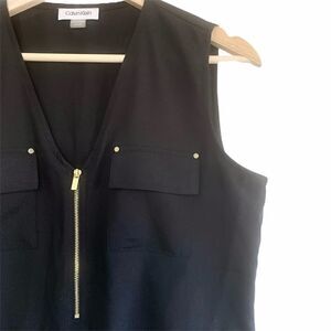 This CALVIN KLEIN Black Top with Gold Accents and pockets is great for any day or night out.