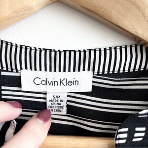 Calvin Klein Blouse High-Low Tunic Women's S Black White Pullover Side Slits