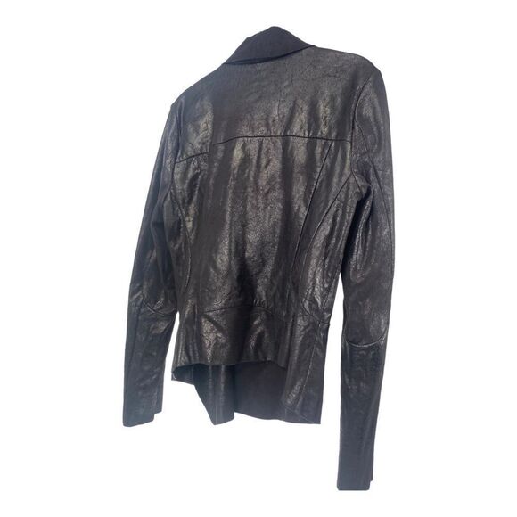 Get ready to take on the world with this stylish and chic Light Biker Black Jacket from Calvin Klein. This faux leather jacket comes in a size small and is in like new condition. It features a classic biker style with a zipper closure, two side pockets, and a stylish stand-up collar. Whether you're hitting the streets or the office, this jacket is sure to make a statement.