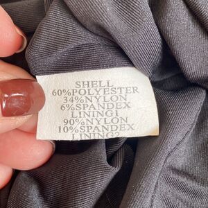 In excellent preowned condition stunning and flattering Calvin Klein sleeveless top features an elegant rushed design, clean rounded neckline, a side zipper, and is fully lined.