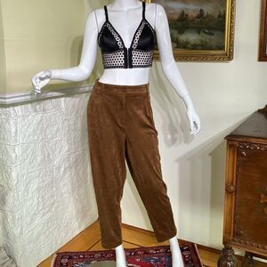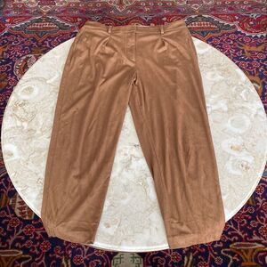 Faux suede trousers from Calvin Klein. Ankle length, pleated front, side slit pockets, belt loops, front zipper closure. These are the perfect addition to your fall wardrobe!