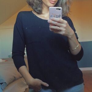 Great black shirt 1 front pocket 3’’ longer in the back 3/4 sleeves Stretch and super comfortable