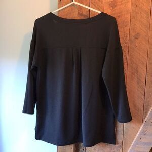 Great black shirt 1 front pocket 3’’ longer in the back 3/4 sleeves Stretch and super comfortable