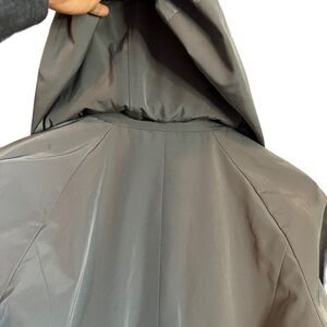 This Calvin Klein Trench-Style Coat in size XS is in great pre-owned condition with minimal signs of wear. There are some marks on the back (please refer to photos), but overall it remains a stylish and functional piece. The hood is detachable, adding versatility to this classic coat.