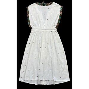 Calypso St. Barth Sz L Dress White Cotton Gauze Beaded Kaftan Maxi New NWT