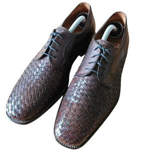Calzoleria Toscana Men's Hand Craft Leather Woven Shoes Brown Size 8.
