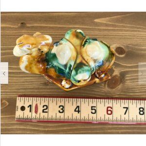 Vintage ceramic camel figurine, 6 1/2" tall x 6" long x 3" wide. Very good pre-owned condition, glaze has crazing lines, and wear to paper covering on bottom..