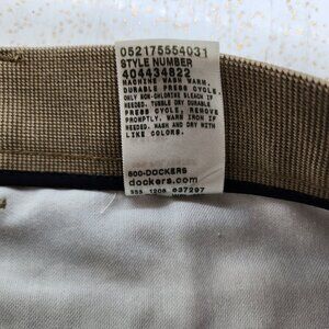 Dockers Classic fit Camel Coloured Pleated Trousers for Men. 36 W x 34L. Cotton and Polyester blend. Pockets front and back.Zip/button fly. Like new preloved condition.12.5 inches rise aprox., 33 inches inseam aprox. 43 inches outseam aprox.