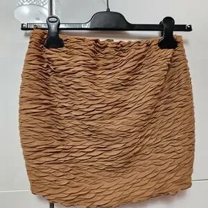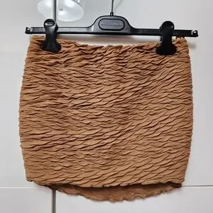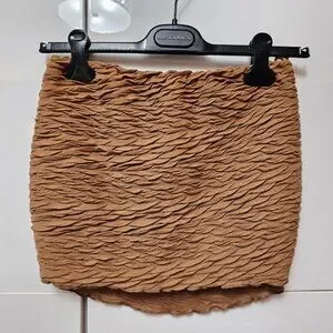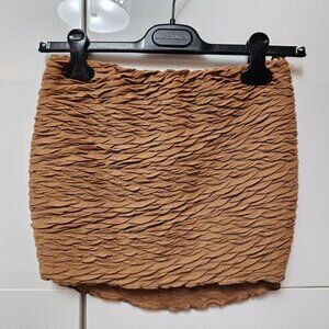 Take any look to new heights with this camel textured low rise micro mini skirt.