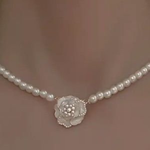 Camellia Flower Pearl Pendant Necklace