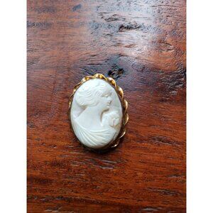 Authentic Shell Cameo in a gold frame. White Shell, White lady. Great condition. Hand Carved Vintage Brooch. Perfect Gift Item for your special lady! Right Facing. Authentic vintage cameo lady 1 inch