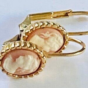 Here is a delightful set of vintage cameo earrings. This delicate set was from an estate sale and I have no info on it and there are no markings that I can see. I think it is probably circa 1970s or 80s. It's costume jewelry but has the weight and feel of quality. Anyone who loves cameos will adore this set. Shipping is included in the price :)
