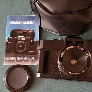 Kinetic 35 mm camera with instruction booklet and solft case. Pocker size for ease of travel and auto focus. Requires film.