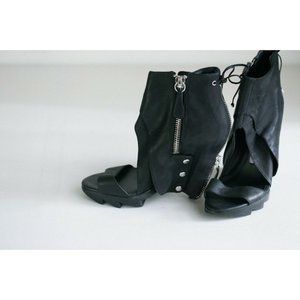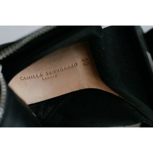 Camilla Skovgaard Open Toe Zipper Hood Back High heel Black Leather Booties 39