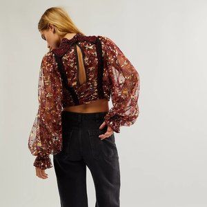 Stun in this so special top featured in a high-neck, cropped silhouette with stunning bead detailing throughout and exaggerated sheer sleeves for added dimension.