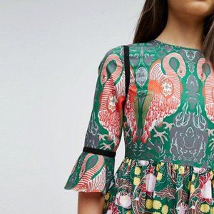 Camino Couture maxi dress green flamingo sz 6 / UK10