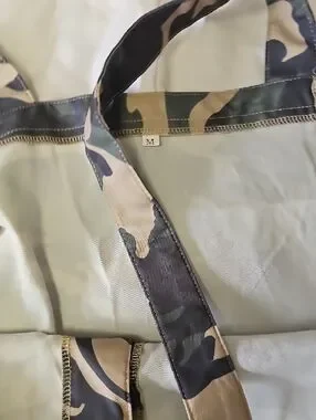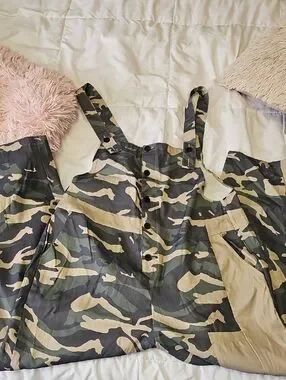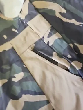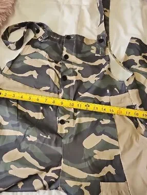 Camouflage overalls with adjustable shoulder straps. Button-front closure and functional pockets. Very thin material but not see through.