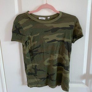 A soft, loose camo t-shirt from TNA, Aritzia. Fits a little bigger, not a lot. Can be used as loungewear, activewear, and even casual wear. Barely worn, in perfect condition. Will be ironed before shipped.
