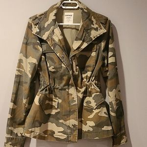 This jacket is in 10/10 and has not been worn yet. It was bought from Garage and is in a woman's small. This jacket has an adjustable waist and can be worn either straight or with a tightened waist. It's great for layering and for fall. It fits a little oversized so it's more of a medium in comparison to small.