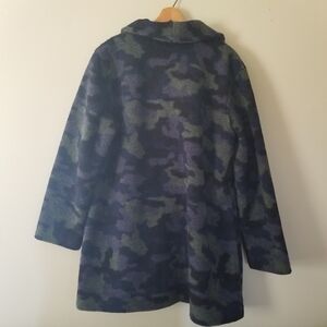 Camouflage Teddy Fleece Long Jacket Cozy Lined Susan Graver Weekend Medium-Large