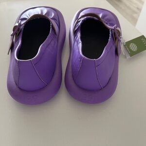 From B Corp Camper. The most gorgeous colour Purple leather women's ballerinas with cushioning recycled OrthoLite®, footbeds and XL EXTRALIGHT® Organix™ 3.0 Outsoles with 30% biocircular components.This contemporary reinterpretation of Aqua, a signature Camper style from the 90s, boasts a playful design inspired by inflatable speed boats. 100% Calfskin. 56% Recycled Polyester, 44% Leather. Brand new in box.