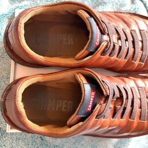 Camper Beetle is an icon that evolves with every season, are lightweight and flexible, with a sealed construction that combines an anatomic shape with original design, brown calfskin leather with elastic laces and XL EXTRALIGHT® EVA outsoles.