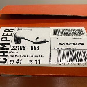 These Camper shoes/sandals are essentially brand new. The colour is a very pretty lavender and the size is EU 41/US 11. The strap around the ankle is velcro (visible in photos).