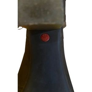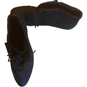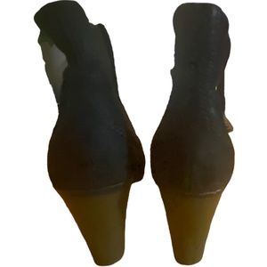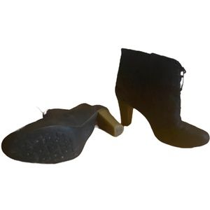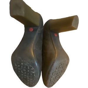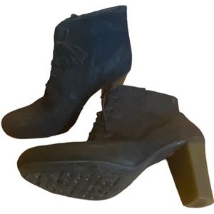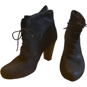 These camper black high heeled lace up booties are comfy & have a rubber sole with good grip.