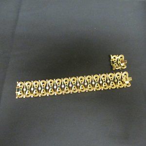 This exquisite example in gold tone with emerald green and clear crystals is a definite statement piece.