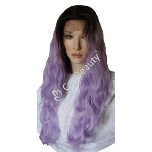 Lace: Swiss lace, soft and durable, dark brown/black root into lavender purple hue, 11”x 3”, 150% density, glueless.
