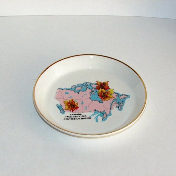 Canada Centennial Trinket or Pin Dish 1867-1967 Map 4.5" Vintage Souvenir