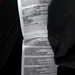 Composition: Shell: 84% polyester, 16% cotton. Lining: 100% polyester. Fill: 80% duck down, 20% duck feather.