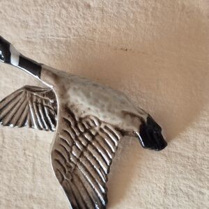This exquisite bird illustration by Impressions showcases a detailed depiction of a Canadian Goose in flight, rendered in striking black and brown tones. The intricate line work captures the bird's graceful movement and the texture of its feathers, making it a captivating piece for bird enthusiasts.