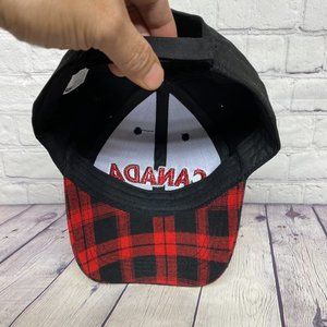 Canada Hat Cap Strap Back Red Plaid Bill Spell Out Embroidered 100% Cotton