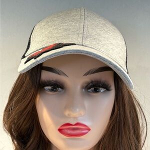 • Trendy trucker style with a breathable black mesh back and a comfortable gray front panel and brim.