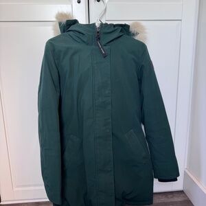 This is a Canada Goose Victoria Parka in Algonquin Green. Photos don’t really do the colour justice. Size small.