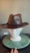 Canadian Leather Craft hat, in very good condition - minor scuffing and light signs of wear (see photos). Soft chocolate brown leather, braided headband with buckle detail, raw leather interior, adjustable wired trim on brim. Measures approximately 23” in circumference, other measurements in photos.