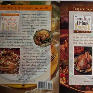 These two Canadian Living's Best softcover cookbooks are from 1994 (Chicken) and 1995 (Easy Cooking). They are Elizabeth Baird and the food writers of Canadian Living Magazine and the Canadian Living test kitchen. There are 95 colorful and glossy in each; both are in like-new condition. Measurements are 8.5 x 11 each.