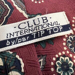 Make a statement with this handsome Club International tie by Tip Top. Expertly crafted in Canada from 100% silk, it features an eye-catching pattern in a striking combination of red burgundy and teal green. This tie offers a touch of luxury and effortless style, making it ideal for weddings, business meetings, or any event where a polished look is essential. Invest in this timeless piece to enhance your formal wardrobe.