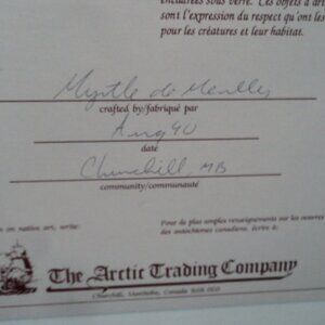 This product is a rare Canadian Native collectable wall art featuring caribou hair tufting by Inuit artisan Myrtle de Muelles, dated Aug '90 Churchill, MB.