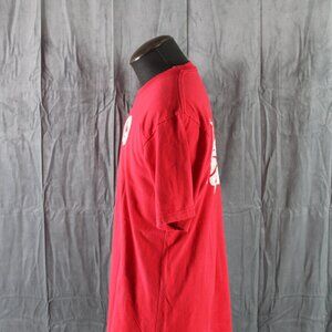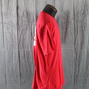 Up for sale is a Canadian political shirt. It is for the Liberal party and it has a red base colour. The front of the shirt has the Liberal L logo screened on the left side in white. The back of the shirt has a maple leaf screened on with real progress in the middle of it. What a great shirt do not miss out on it.