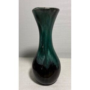 Canadian Pottery Bud Vase Slant Cut Bulb 6.5" Light Teal Black Drip Glaze MCM