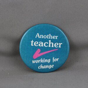 Up for sale is a Canadian union pin. This pin is from the teacher's union of BC. It has the wording on it another teacher working for change and a hot pin checkmark. What a great addition to any pin collection.