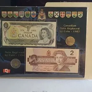 Canadian dollar note replacement by coin 1987 and 1996.