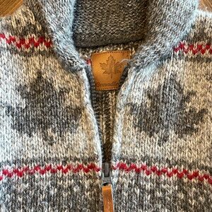 Canadiana Canada Sweater 2T, 89% acrylic, 8% nylon 3% wool.